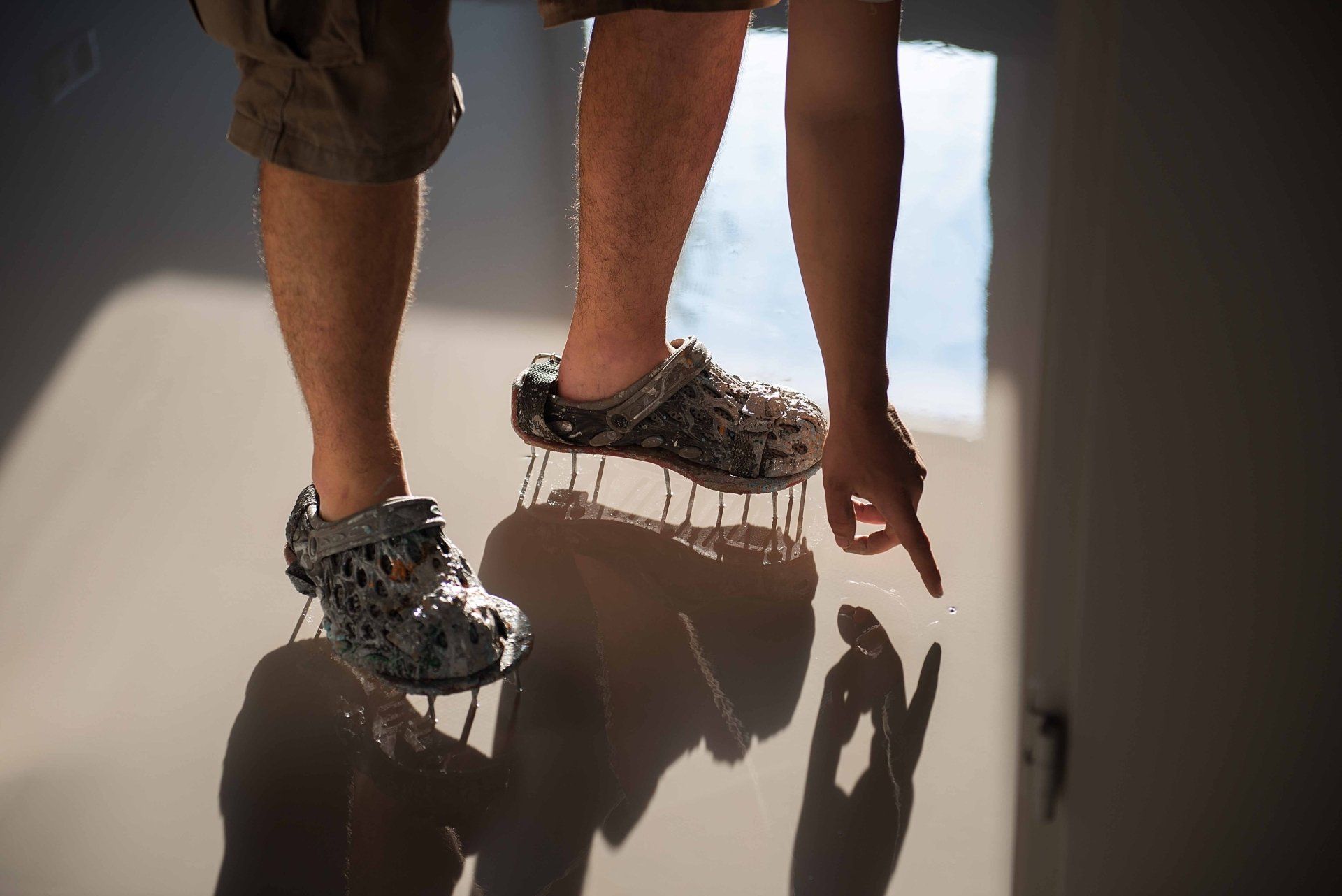 The first day, apply the base layer of epoxy and then grind again when dry.