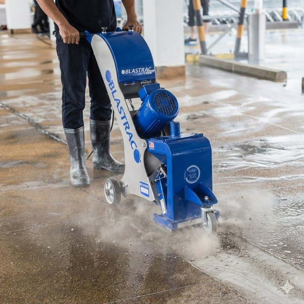 To create a strong clean basis for the epoxy to attach to, grind and clean the concrete surface.